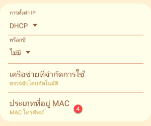 lovemusic การตั้งค่า > เมนู W-Fi > กดค้างที่ Wi-Fi BMA ที่กำลังเชื่อมต่ออยู่ > จัดการการตั้งค่าเครือข่าย เลือกชั้นสูง เลือก ประเภทที่อยู่ MAC เป็น MAC โทรศัพท์ ดังภาพและกด บันทึก