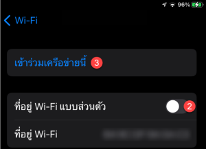 lovemusic การตั้งค่า > เมนู Wi-Fi > กดเชื่อมต่อ Wi-Fi BMA ที่กำลังเชื่อมต่ออยู่ > กดที่เครื่องหมาย i เลือกปิดที่เมนู ที่อยู่ Wi-Fi แบบส่วนตัว ดังภาพและเลือก เข้าร่วมเครือข่ายนี้